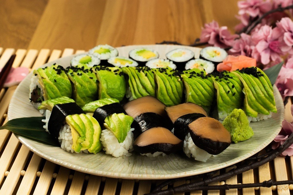 Veggie Dragon Roll 8 buc/ Maki avocado 4buc/ Maki castravete 4buc/ Nigiri shiitake 2buc/ Nigiri avocado 2buc//