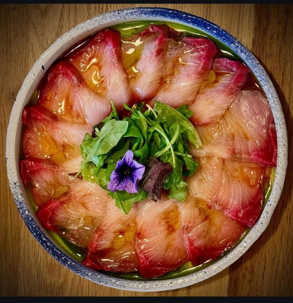 Sashimi de Coada Galbena, ulei de trufe, suc de yuzu, sos de soia, trufe, ridiche alba // Yellow Tail sashimi, truffle oil, yuzu juice, soya sauce, truffles, white radish